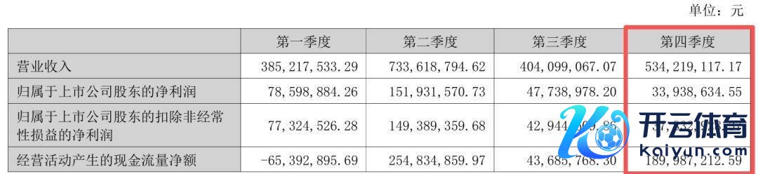 单季度来看,公司第四季度营业收入为5.34亿元,同比下降2.98%;归母净利润为3393.86万元,同比下降65.02%;扣非净利润为3783.29万元,同比下降60.87%。